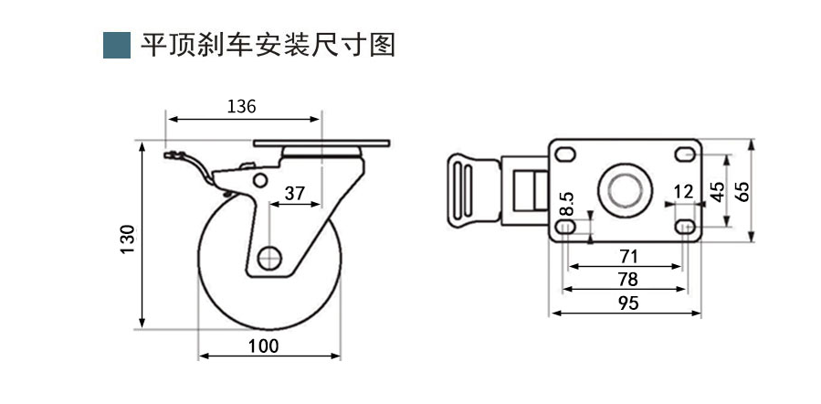 安裝方式:平頂萬向剎車